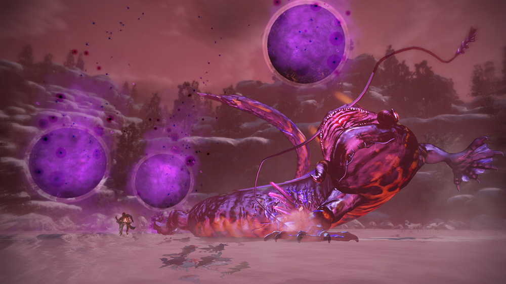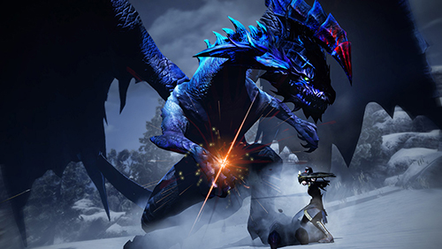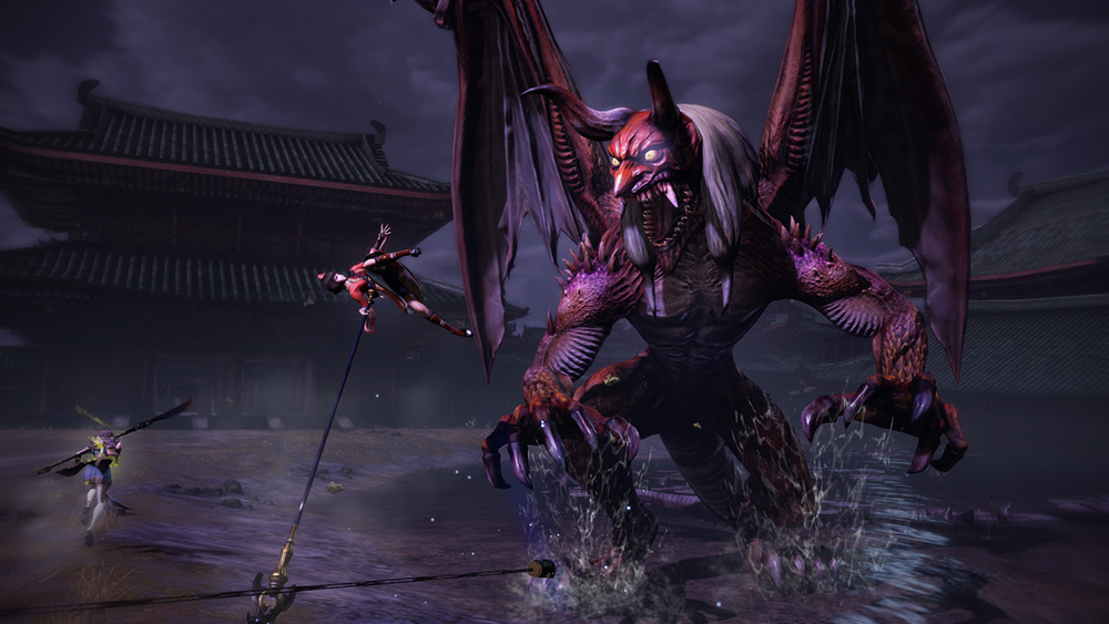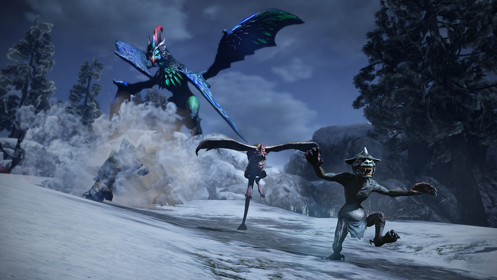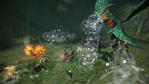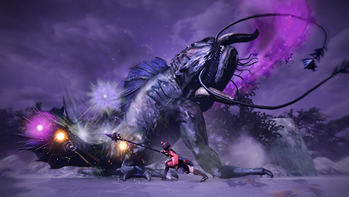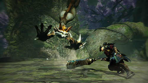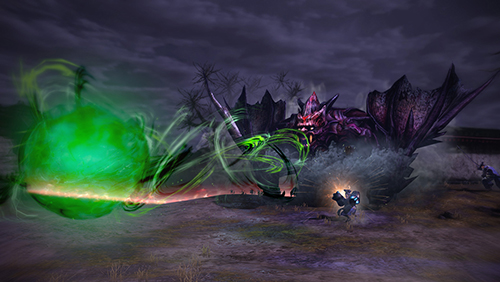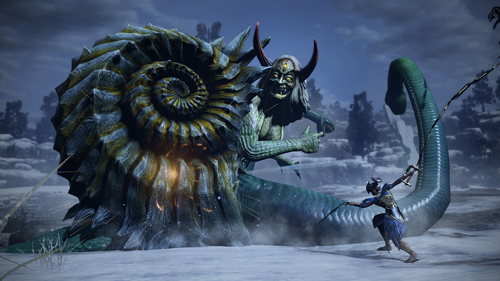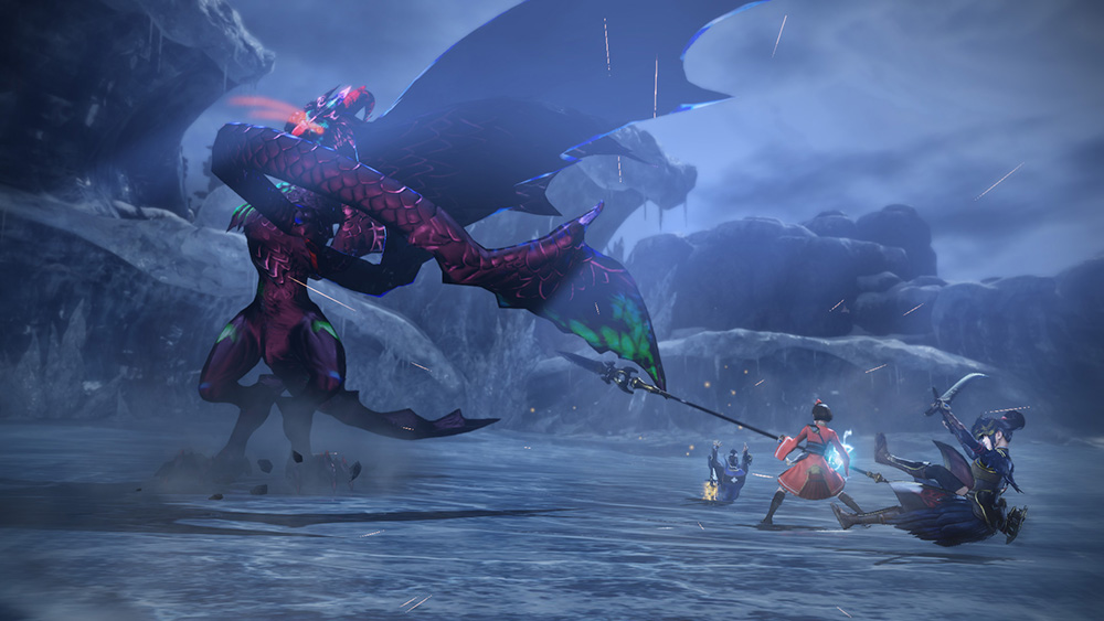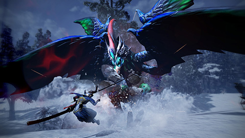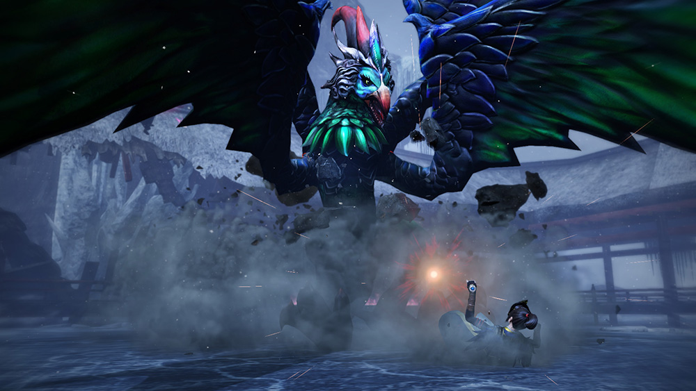 氷原の厳島神社で、翡翠色の翼を持つ“鬼”オメキが現れた。オメキの攻撃は、飛び回ったり、風を巻き起こしたりと、煩わしいものばかりだ。防御系のスキルを駆使しつつ、遠距離武器などで滞空中の敵を撃ち落とせ!