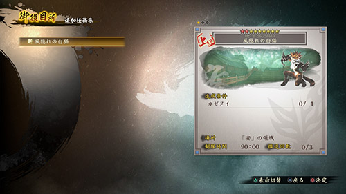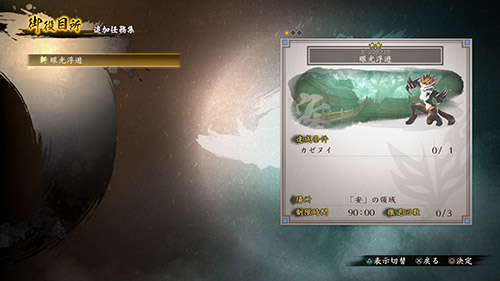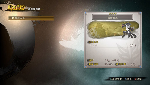 戦ヶ原に、黒猫のごとき“鬼”アマモが現れた。多彩な攻撃を仕掛けてくる上、姿をくらますことがあり、非常に厄介な敵だ。まずは、敵の動きを知ることが重要。攻撃の手を休めたら、一気呵成に攻めたてよう!