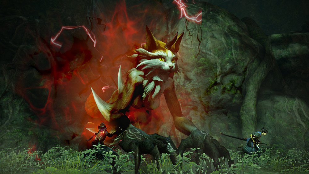 安寂桜花街で、猫のような姿の“鬼”カゼヌイが現れた。俊敏かつ獰猛な広範囲攻撃には注意したい。敵の動きをしかと見極め、隙あらば果敢に攻めよう!