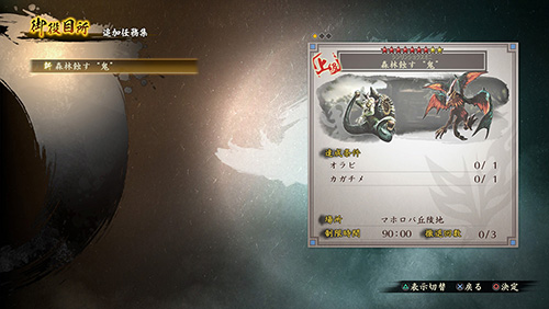 この任務の主な目的は、瘴気の影響で敏化したカガチメを討伐することだ。しかし、朧“鬼”やコガネムジナの出現も報告されている。各地を歩き回り、発見し次第、討伐せよ!