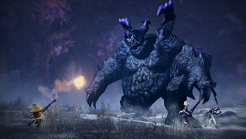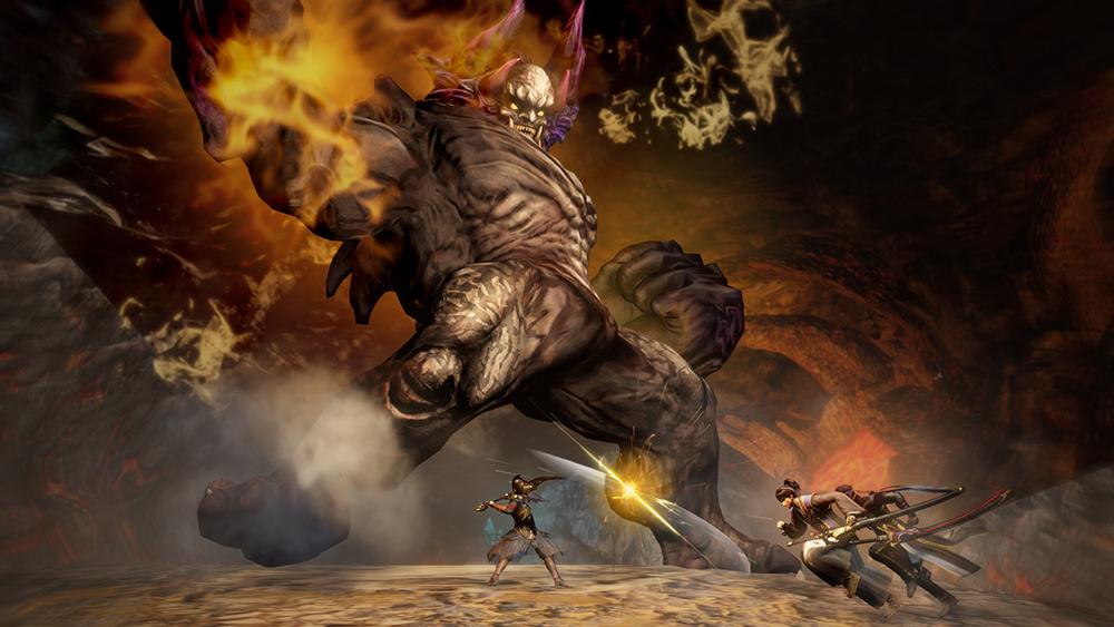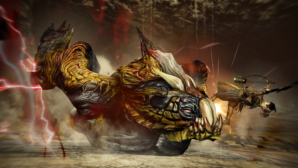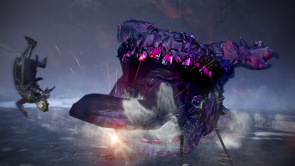 地獄谷で、炎を纏った“鬼”ホムラカヅキが現れた。攻撃は広範囲に及ぶだけでなく、受ければ炎上状態に陥るものもある。炎上は放置すると体力が奪われるため、体力ゲージに気遣いながら戦うべし。