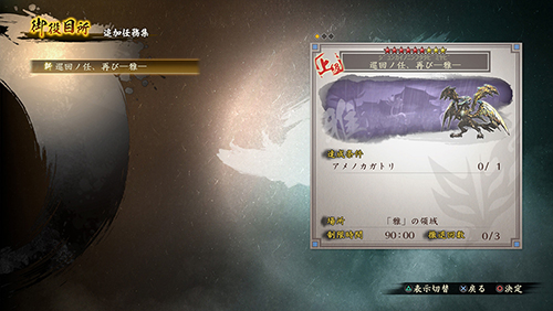 カゼヌイを討伐後、トコイが出現するという厳しい任務だ。その上、瘴気の影響により、制限時間が少ない。仲間との連携を密にし、総力を挙げて迅速に討伐せよ!