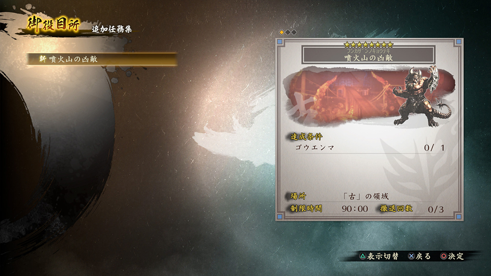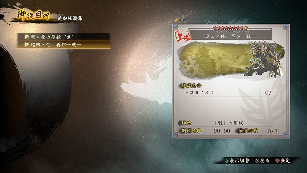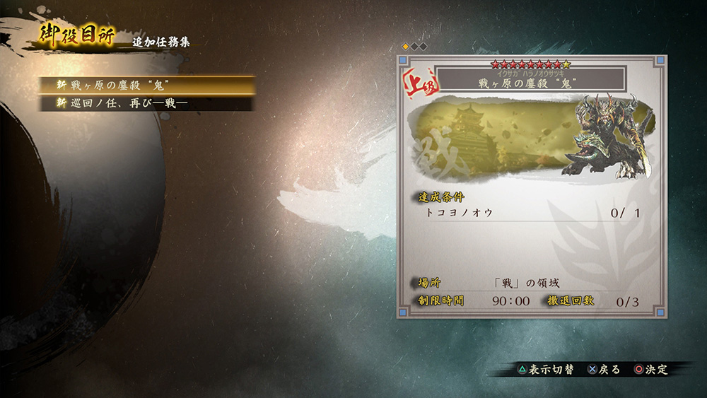 戦ヶ原で、凶悪な瘴気を放つトコヨノオウが現れた。その禍々しい巨躯に怯えたら最後、死の道を辿ることになるだろう。勇気を奮い起こし、己が力を極限まで振るい、真の“鬼”討つ者となれ!