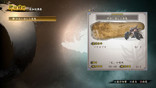 軍艦砂漠で、地中に潜む“鬼”ツチカヅキが現れた。地上・地中を自在に動き回るため、攻撃を当てられる機会が少ない。敵の行動を推測し、先回りして攻めていこう。