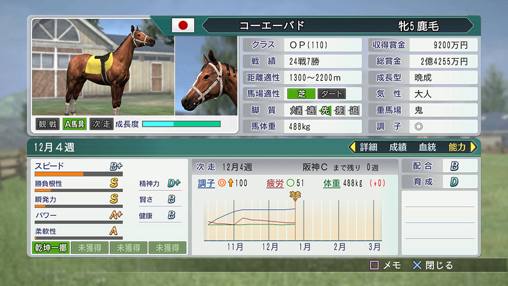 競走馬詳細画面では調子・疲労・馬体重の推移を能力と同時に確認できるようになりました。