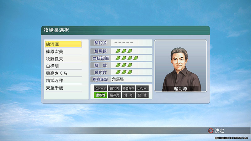 馬主生活をスタートすると、最初に誰に牧場を任せるかを決めることになります。