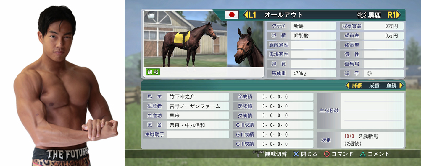 国内有数のプロレス団体「DDTプロレス」のプロデューサー「男色ディーノ」選手と、2億万年に1人の逸材「竹下幸之介」選手が考案したスーパーホースが登場します!
