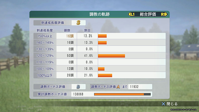 他にも、どの「調教ボーナス」をどれだけ起こしたかを把握することもできます。「調教の軌跡」を有効活用して、理想の競走馬を育成しながら「調教」を楽しんでくださいね!