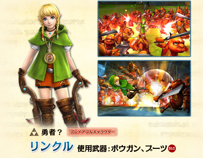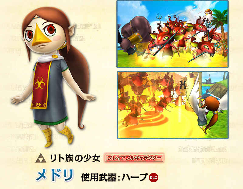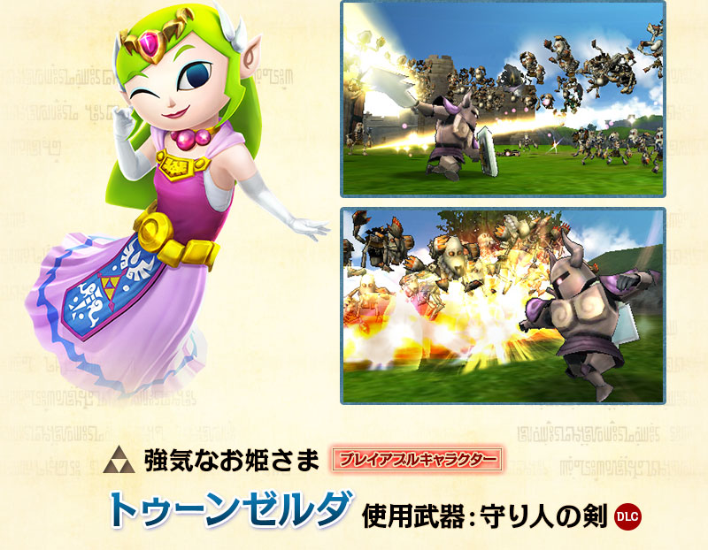 ※Wii U版『ゼルダ無双』のDLCキャラクターは、ニンテンドー3DS版『ゼルダ無双 ハイラルオールスターズ』を購入しても、Wii U版『ゼルダ無双』ではプレイできません。別途 Wii U版『ゼルダ無双』のDLCをお買い求めください。
