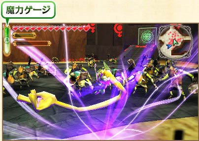 魔力解放中はゲージが減っていくが、なくなるまで攻撃スピードアップ、敵からの攻撃にのけぞりにくくなる、獲得できる経験値やルピーが増えるなどのボーナスがつきます。