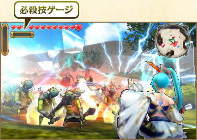 フィールドにドロップした「フォースのかけら」を手に入れるか、敵を攻撃すると 必殺技ゲージが溜まっていきます。 満タンになると「必殺技」を発動、必殺技がヒットする敵が明るく光ります。 必殺技で周囲の敵を一気に撃破!!