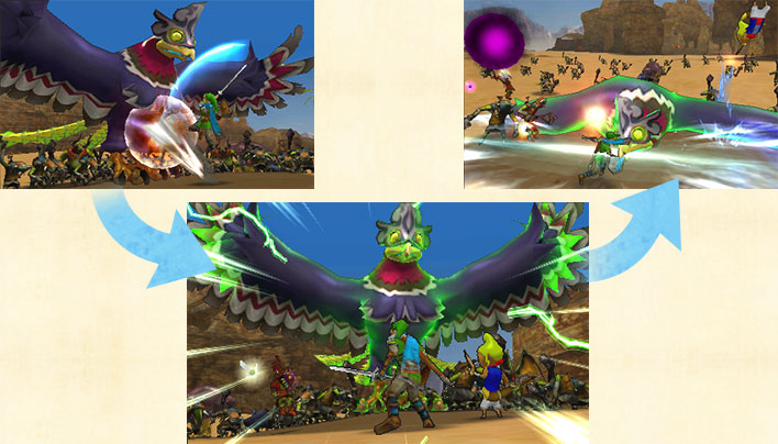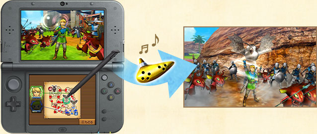 オカリナを吹くと竜巻が発生し、戦場に点在する「大翼の石像」にワープできます。