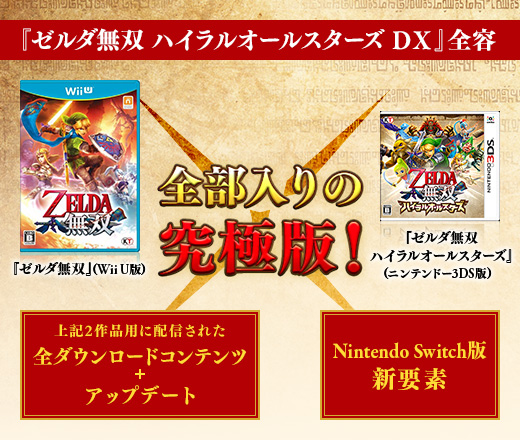 Nintendo Switch版『ゼルダの伝説 ハイラルオールスターズ DX』は、Wii U版『ゼルダ無双』とニンテンドー3DS版『ゼルダ無双 ハイラルオールスターズ』の全コンテンツを、ダウンロードコンテンツとアップデートも含めて、余すところなく収録!