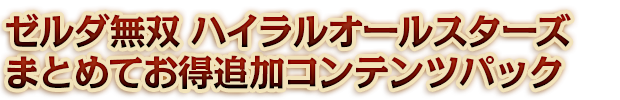 | ※ | 「ゼルダ無双 ハイラルオールスターズ まとめてお得追加コンテンツパック」との重複購入にご注意ください。 |