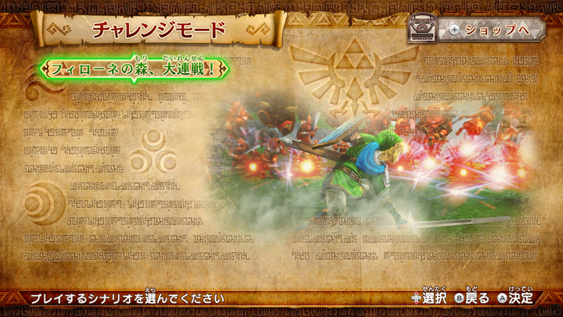 ![]() | 追加チャレンジモード: ガノンプレイ あの魔獣ガノンを操作してハイスコアを目指すモードが登場。圧倒的な巨躯が戦場を破壊し尽くす、いまだかつて誰も見たことのない桁違いの無双バトルがここにある。それぞれのバトルで戦績を残すことが可能。 さらにガノンドロフとシアのコスチューム報酬も。 |