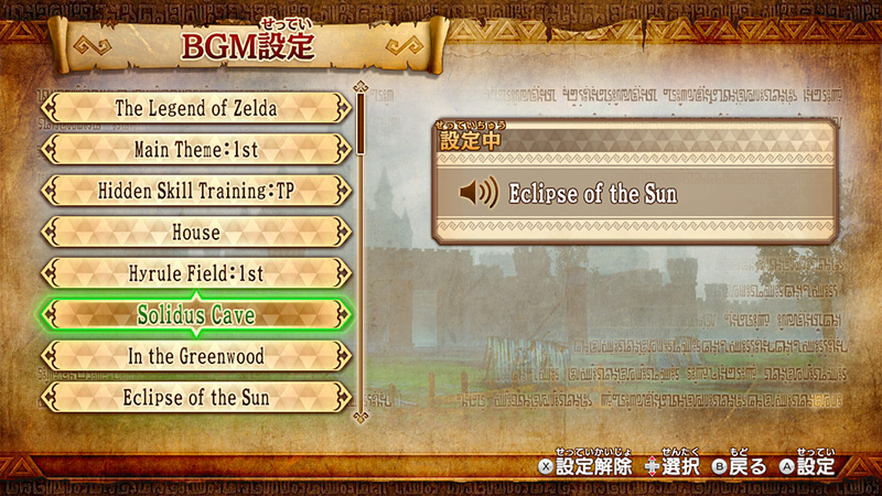 なお、選択できる曲は、ギャラリーのサウンド鑑賞で選択できるものと同一です。